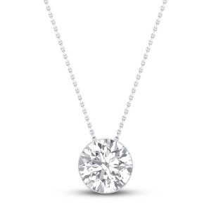 Diamond Solitaire Necklace 1 Carat Round-cut 14K White Gold 16
