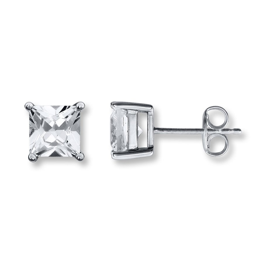 Classic style abounds in these square-cut, lab-created white sapphire earrings. Crafted in sterling silver, the earrings are fastened with friction backs.