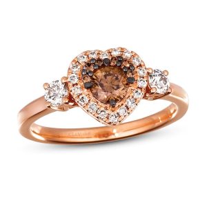 This ring is available in limited sizes. If you don't see your size here, please visit a store to order your ring. A cushion-cut Le Vian Peach Morganite gemstone is the beautiful center of attention in this ring for her. Chocolate Diamonds fan out on either side, while lines of Nude Diamonds supply the finishing touches. The ring has a total diamond weight of 5/8 carat and is crafted of luscious 14K Strawberry Gold. Le Vian. Discover the Legend.